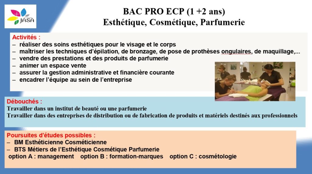 Communication JASAb Formations Voie Professionnelle assistance, ASSP, cosmétique, ECP, esthétique, lycée, parfumerie, personne, pro, professionnel, service, soins